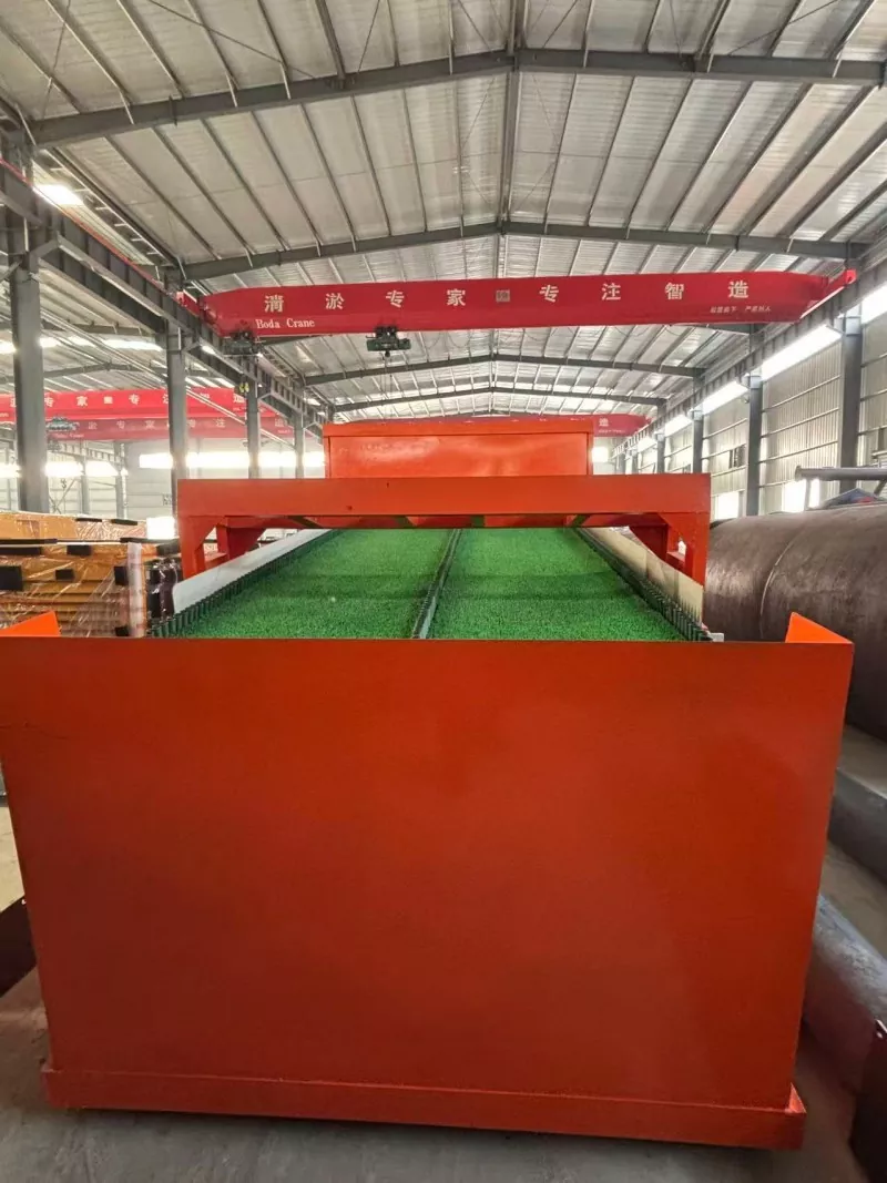 1. Rudná kaša je rovnomerne rozložená na povrchu rohože absorbujúcej zlato. Ťažké minerály (zlato) sú účinne adsorbované štruktúrou rohože absorbujúcej zlato, zatiaľ čo ľahké nečistoty sú automaticky odvádzané prúdom vody.